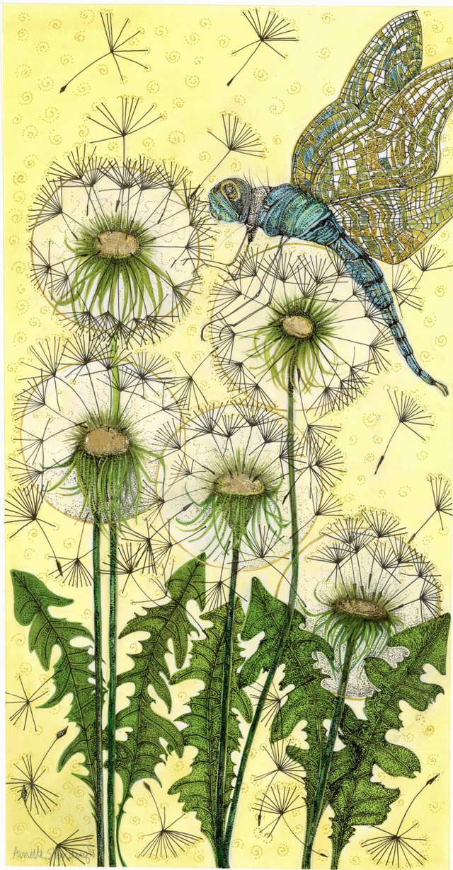 Dragonfly with Dandelions Original SOLD